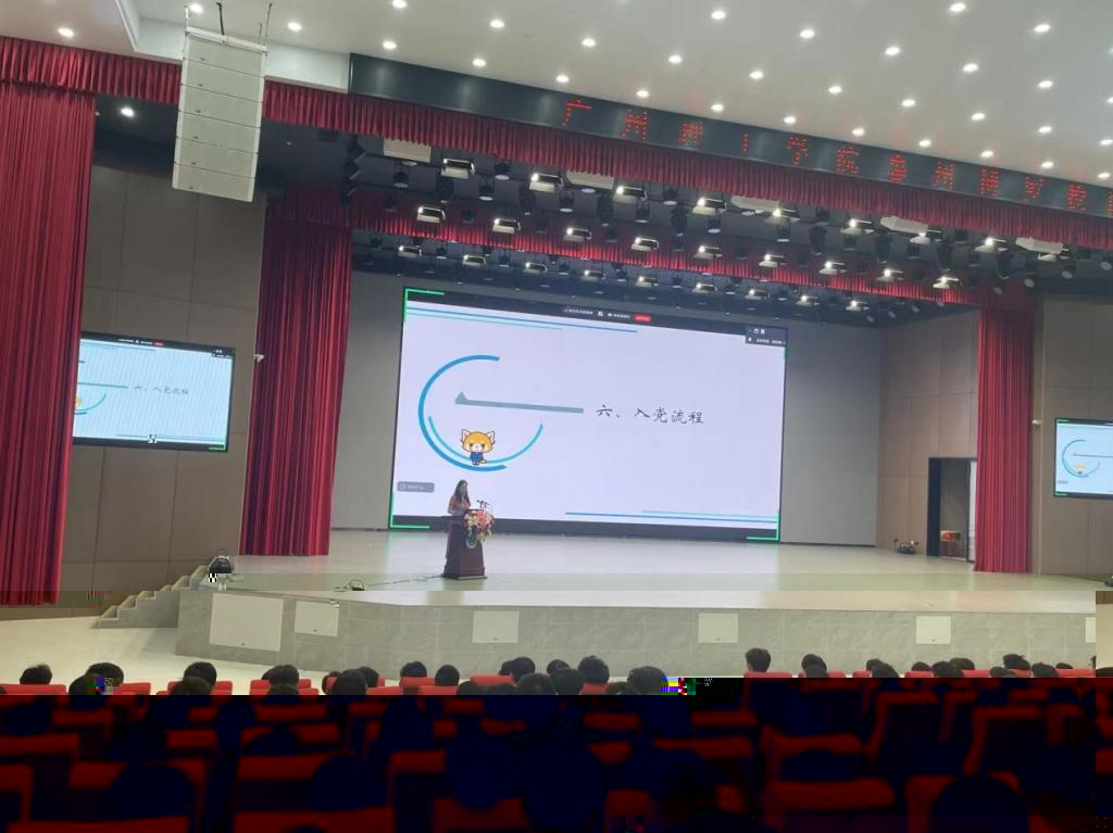 為厚植新生愛黨愛國情懷,引導青年學子扣好人生"第一粒扣子",端正入黨動機、明晰入黨流程,9月11日晚,太阳集团城网址83138以"青春向黨 築夢啟航"為主題,面向2025級全體新生開展入黨啟蒙教育專題講座。學院黨總支書記呂在豔擔任主講人,通過線上+線下結合的方式,在惠州校區大禮堂為2000餘名新生上了一堂生動的入黨啟蒙課。