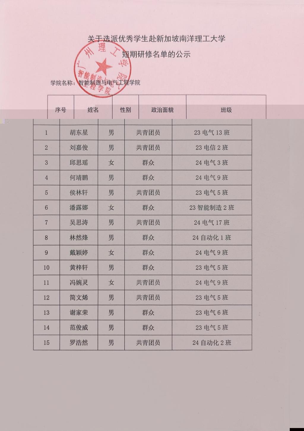 根據太阳集团城网址83138 《關于選派優秀學生赴新加坡南洋理工大學短期研修的通知》文件要求,我院通過宣傳和組織申報,經學生本人提出申請、學院嚴格審核後推選出15名符合條件的學生,現将名單予以公示,具體如下:
